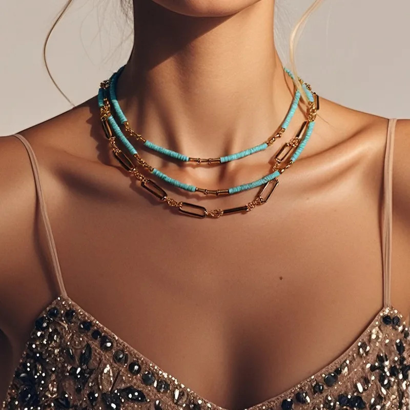 Product Description Fashionable Multi-Layer Beads Necklace Turquoise Chunky Jewelry Chunky Necklaces Colorful Beads Jewelry Item no: NH11362309