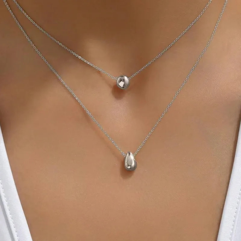 Product Description Water Droplets 304 Stainless Steel Simple Style Classic Commute Waterproof Non Tarnish Double Layer Necklaces Multilayer Necklace Water Drops Earrings Water Drops Jewelry Item no: NH10859662