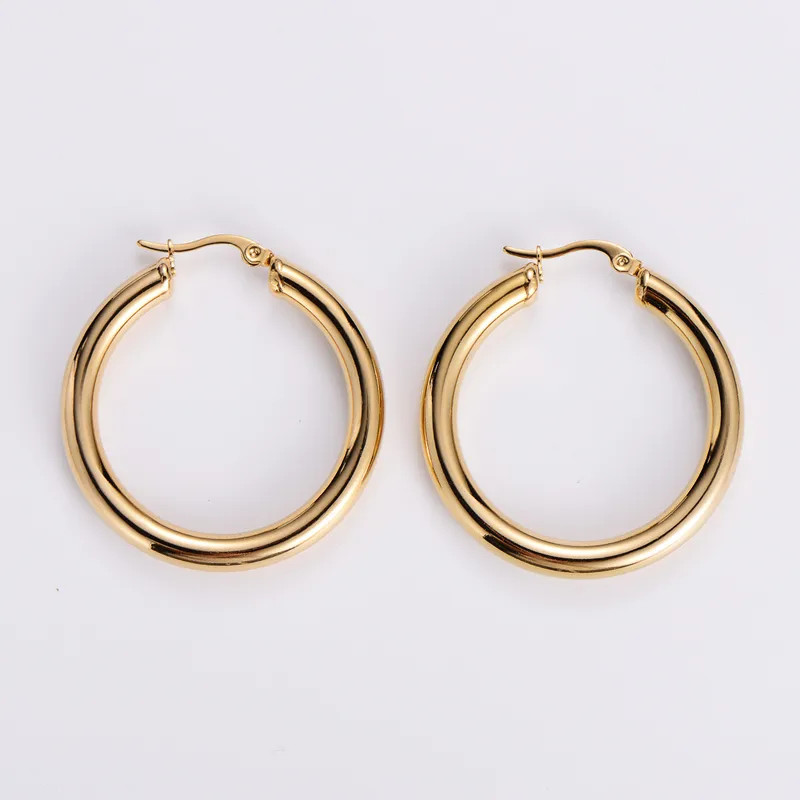 18K Gold Plated Circle 304 Stainless Steel Simple Style Waterproof Non Tarnish Earrings