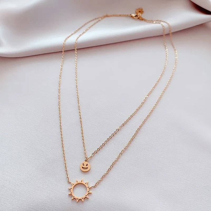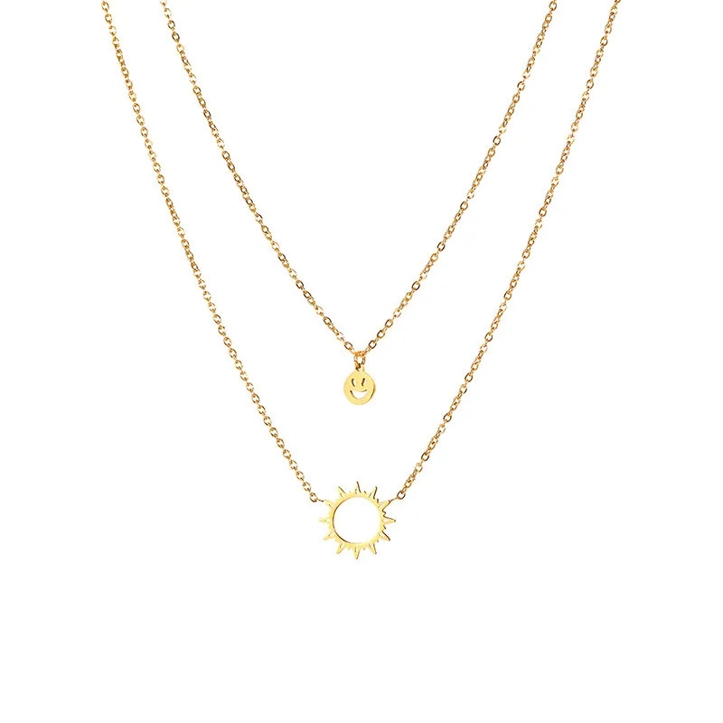 Product Description Gold Plated Geometric Titanium Steel Fashion Waterproof Non Tarnish Necklace Sun Jewelry Collection Smiley Face Jewelry Waterproof Jewelry Item no: NHOK313665