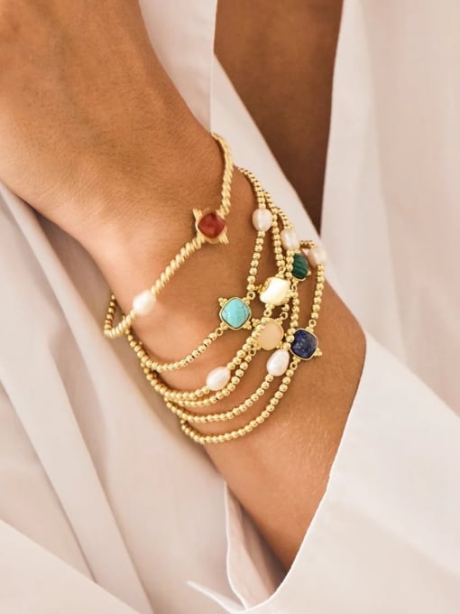 Product Description stainless steel natural stone geometric trend handmade beaded bracelet Stainless steel + Natural Stone+Handmade Beaded Item #:1002311603
