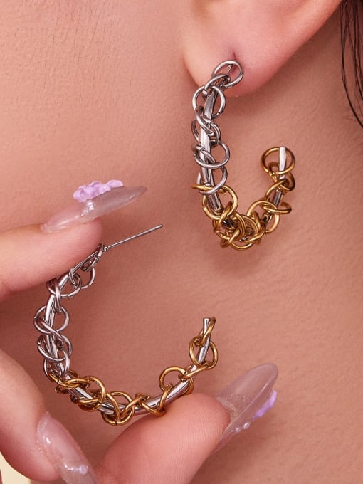 Product Description stainless steel geometric two tone mixed metals wire wrapped hoop earring Stainless steel+C Shape Item #:1002309289